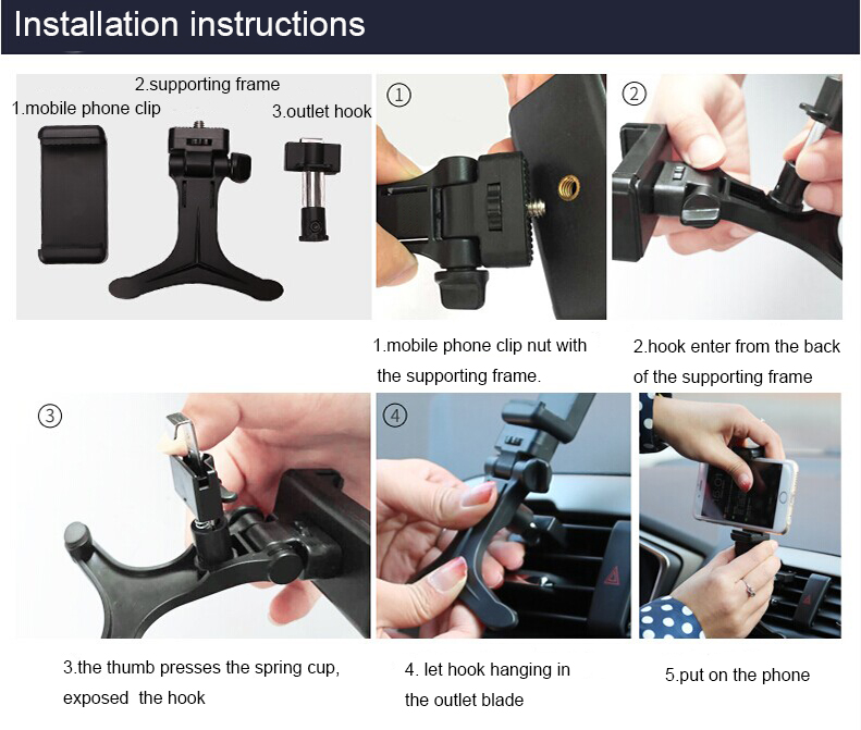 Application Scope: Can be clipped on the air-conditioning outlet of the car to fix the mobile phone,and used as can navigatiom device holder.